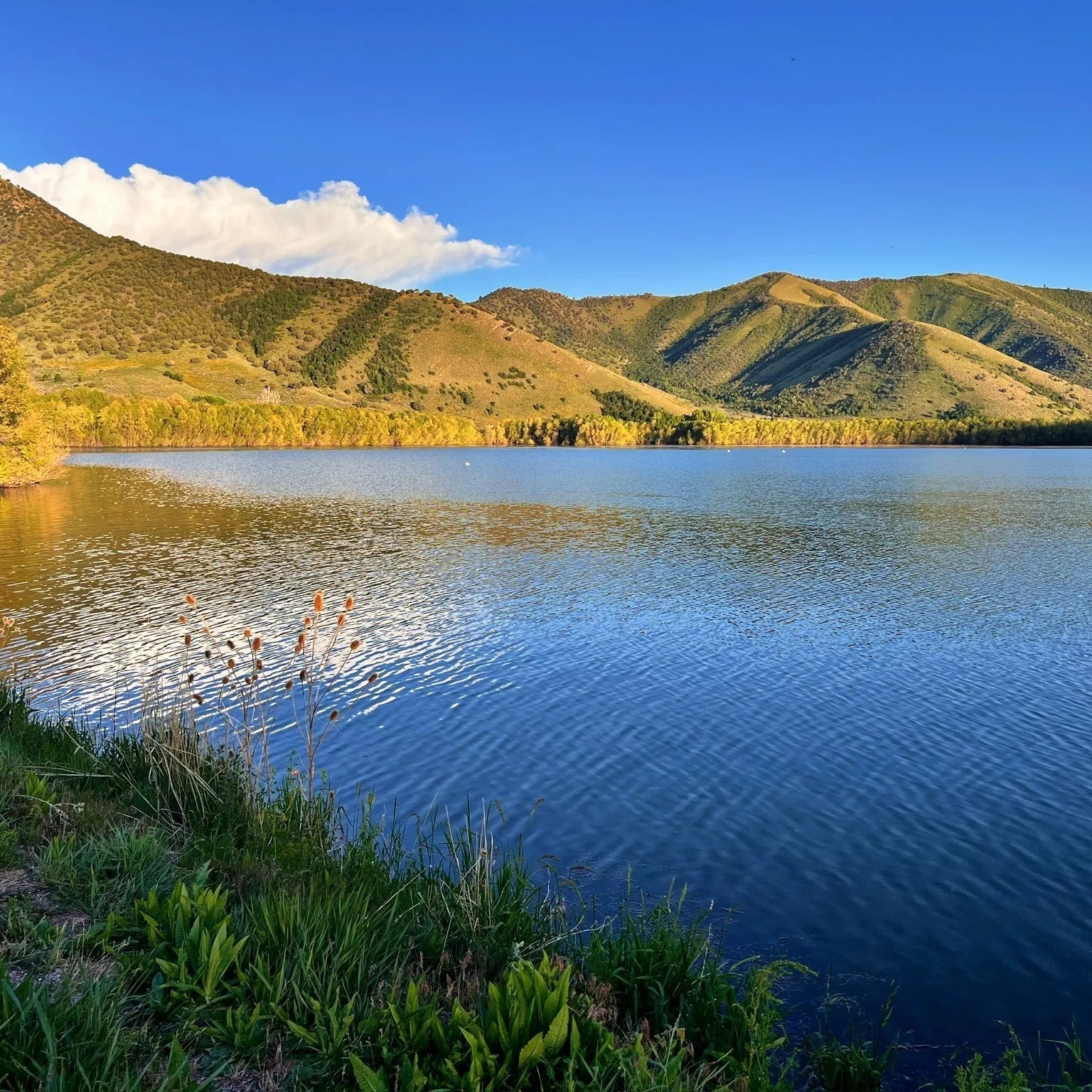 The Mantua Reservoir Dike Trail is a flat, scenic path that loops all the way around the lake, offering easy walking and biking the entire way.